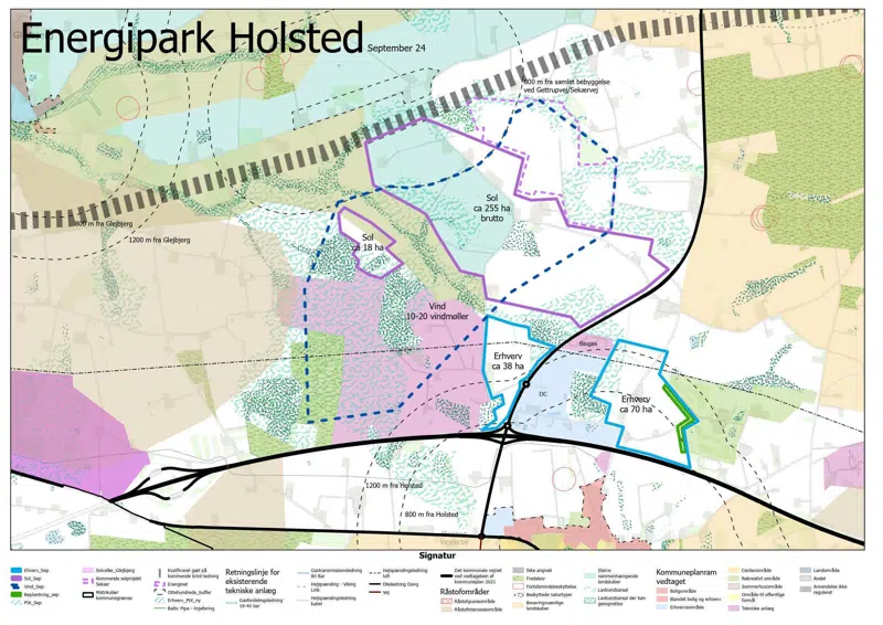 Energipark Holsted har allerede nu store arealer til VE-produktion med Holsted Solarpark, Glejbjerg og solcelleparken ved Sekær. Sammen med biogasanlægget og nærliggende fjernvarmenet er der gode forudsætninger for at synergier i området og en bedre business case.